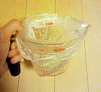 そんなとき、このカップの中に袋を入れて、あまった部分を折り返すと作業しやすい。