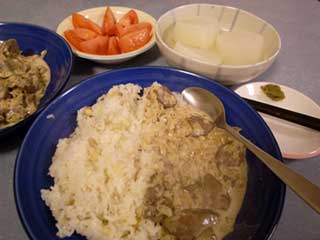 図らずして、食卓が「紅白」になってしまった。記念に撮影してみた。あくまでも記録目当てなので、クオリティの低さは勘弁していただきたい。箸とか退かしたり、食器を並べなおしたりしてる間にメシが冷めるのは本当にイヤなんだ。