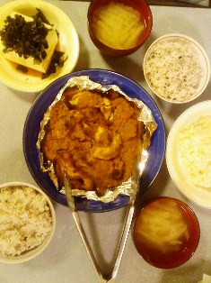 ・タンドリーチキンに似た何か (鶏モモ、タマネギ、にんにく、生姜、チリパウダー、スパイスいろいろ、ヨーグルト)